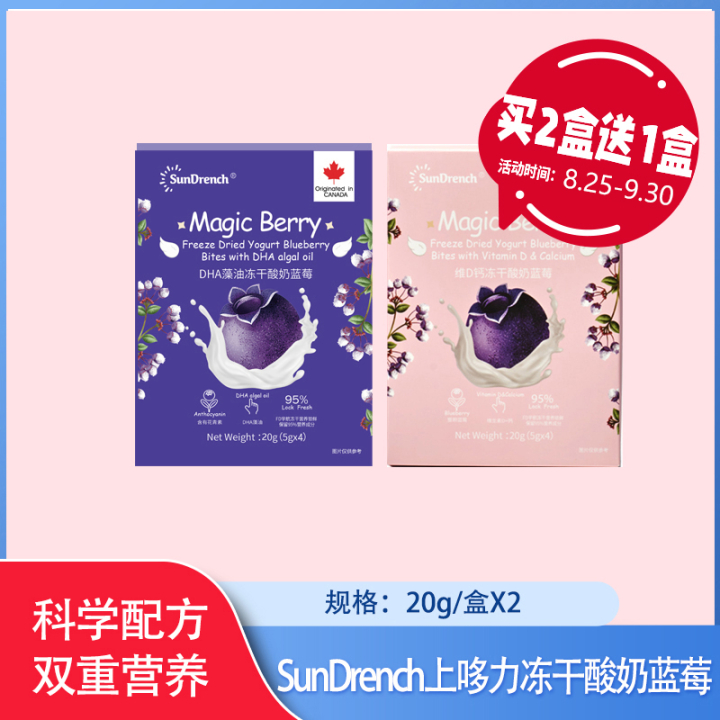 【包邮】SunDrench上哆力冻干酸奶蓝莓20g*2