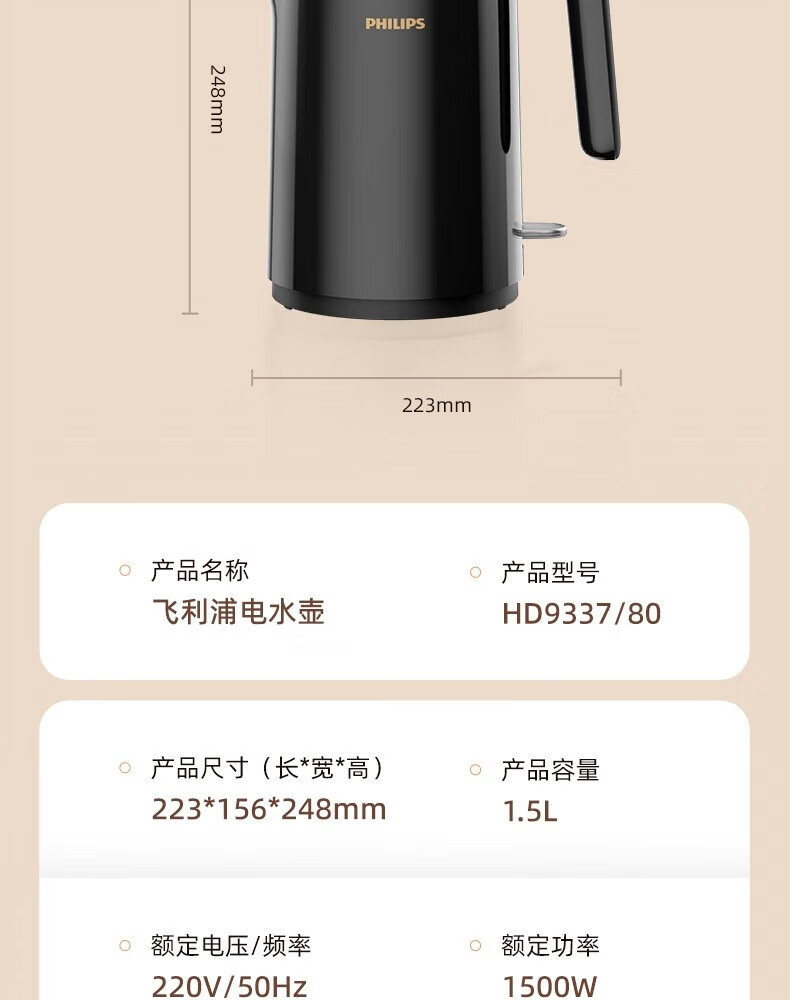 【包邮】飞利浦电水壶1.5L HD9337/80