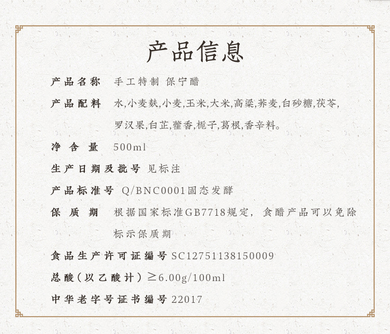 【包邮】保宁手工特制保宁醋500ml