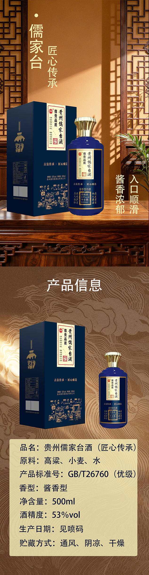 【包邮】53度贵州儒家台酒(匠心传承)500ml