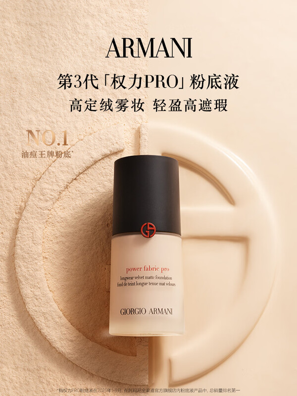 【包邮】阿玛尼权力持久丝绒哑光粉底液30ml