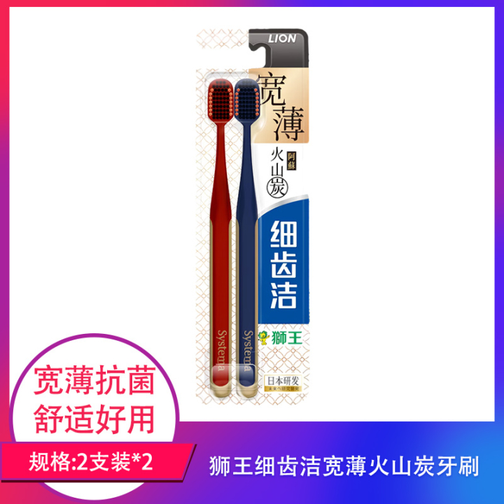 【包邮】狮王细齿洁宽薄火山炭牙刷两支装×2