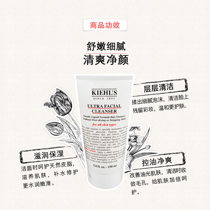 【包邮】科颜氏高效保湿泡沫洁面啫喱150ml