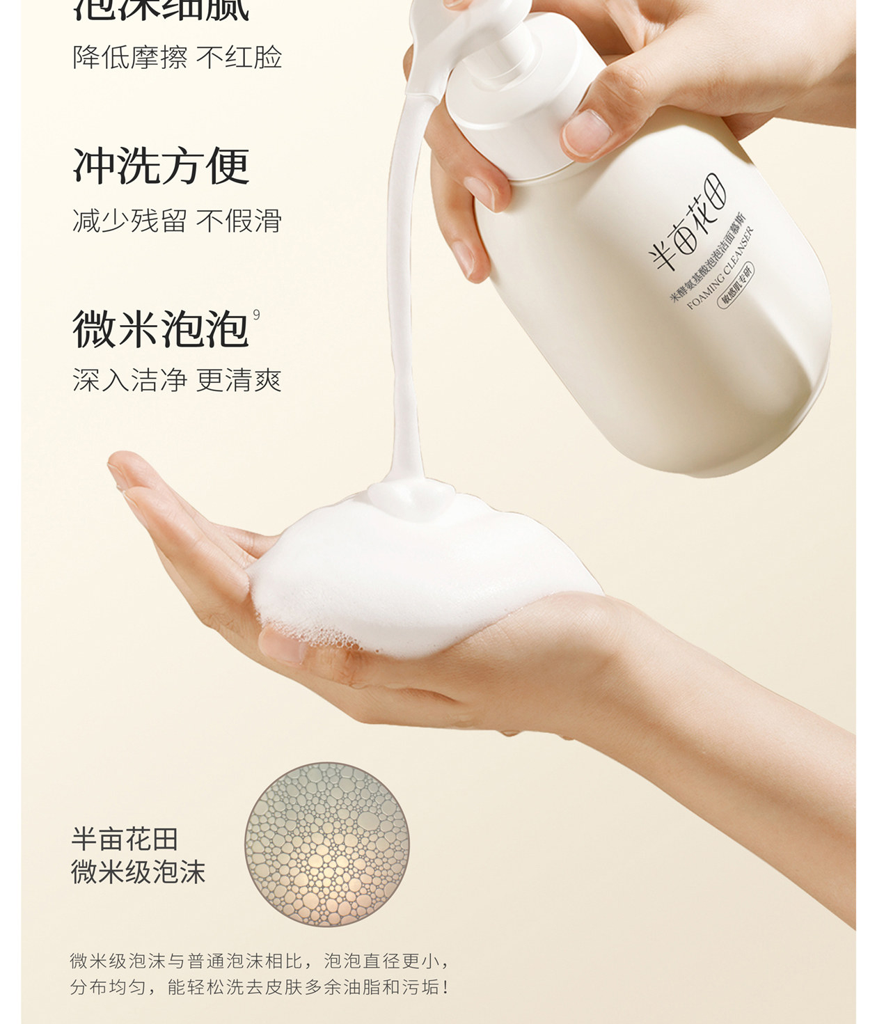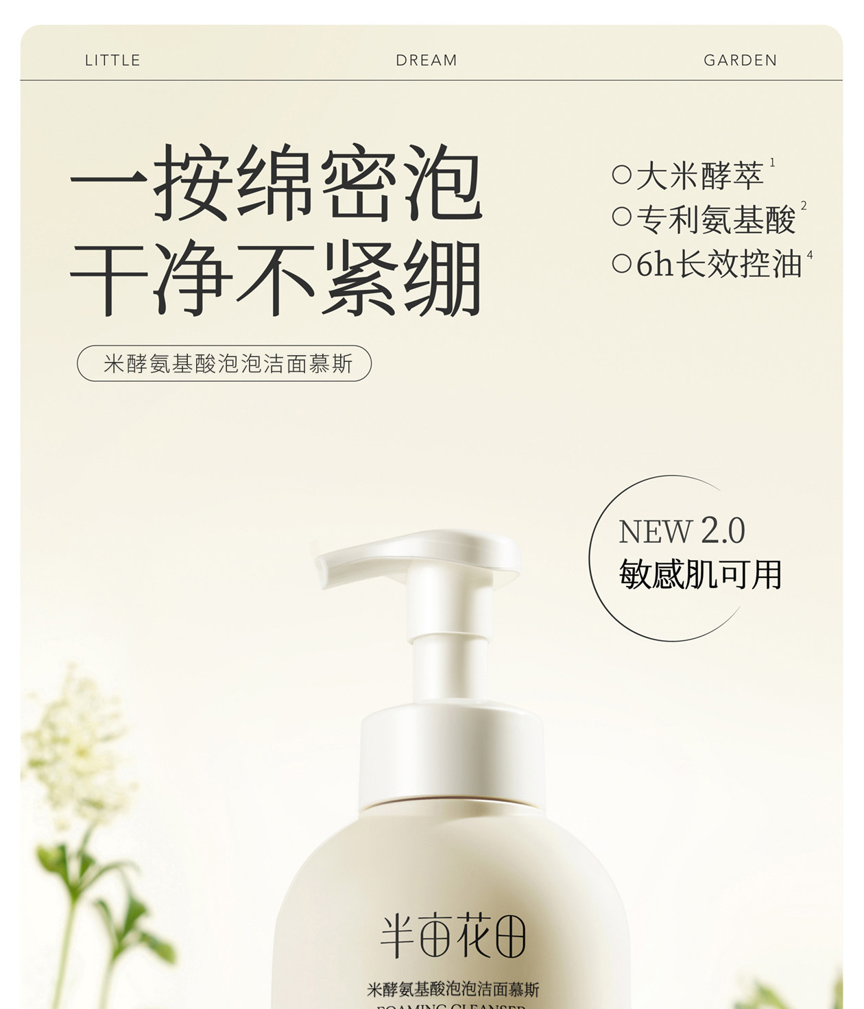 【包邮】半亩花田米酵氨基酸泡泡洁面慕斯500g