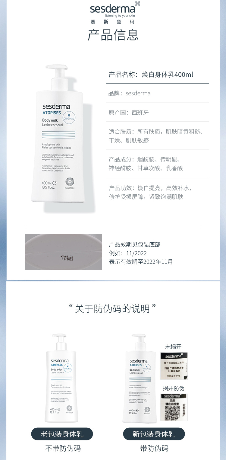 【包邮】赛斯黛玛纯己光润身体精华乳400ml