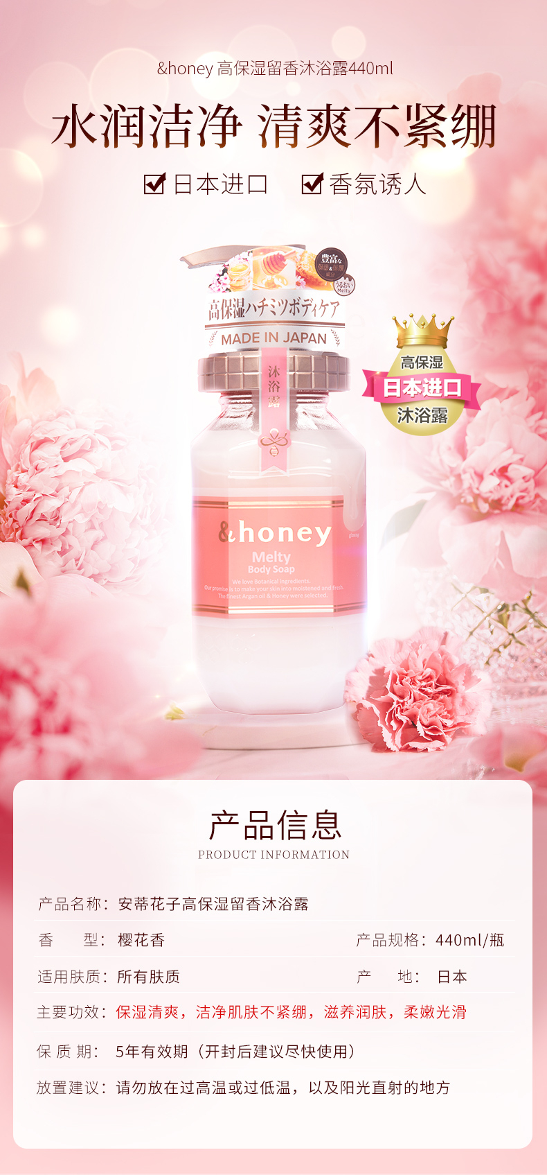 【包邮】安蒂花子高保湿持久留香沐浴露440ml