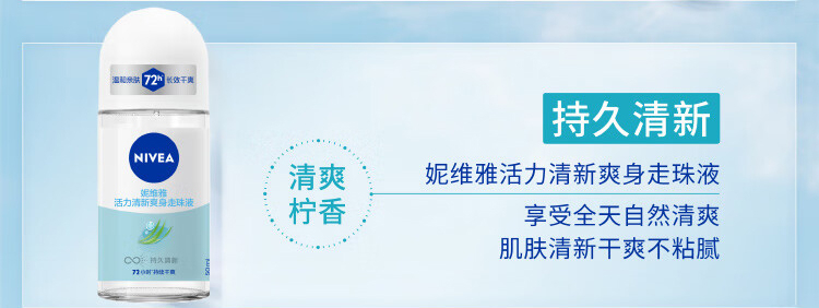 【包邮】妮维雅活力清新爽身走珠液50ml
