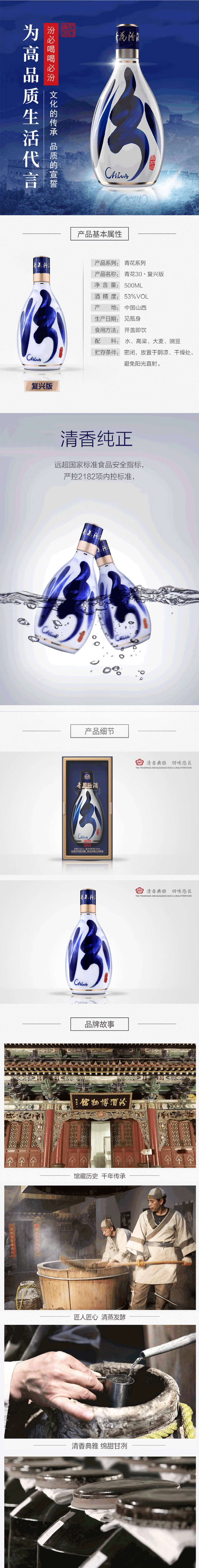 【包邮】53度青花汾酒30复兴版500ml